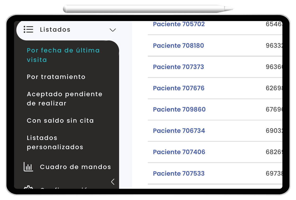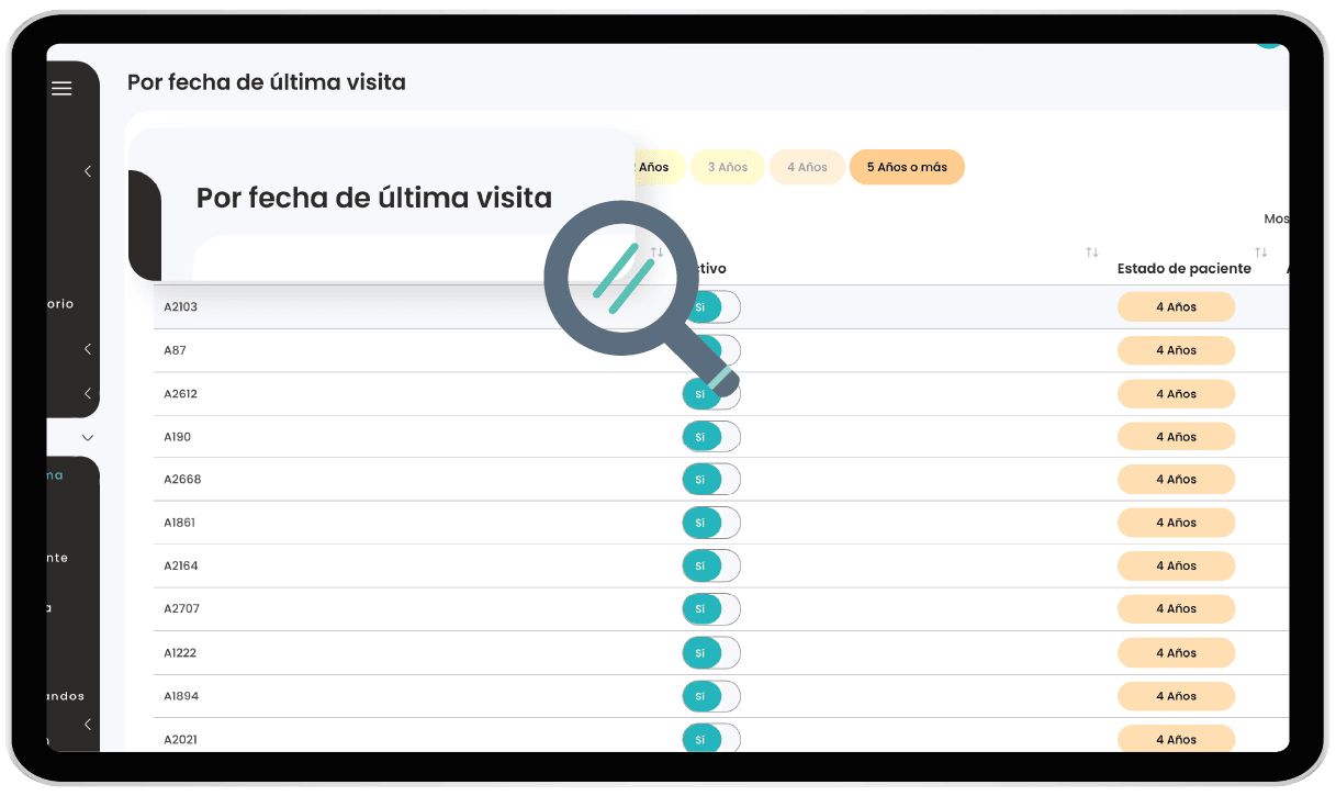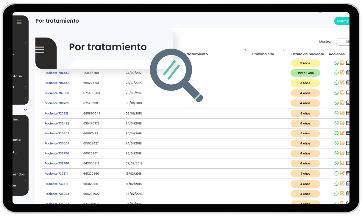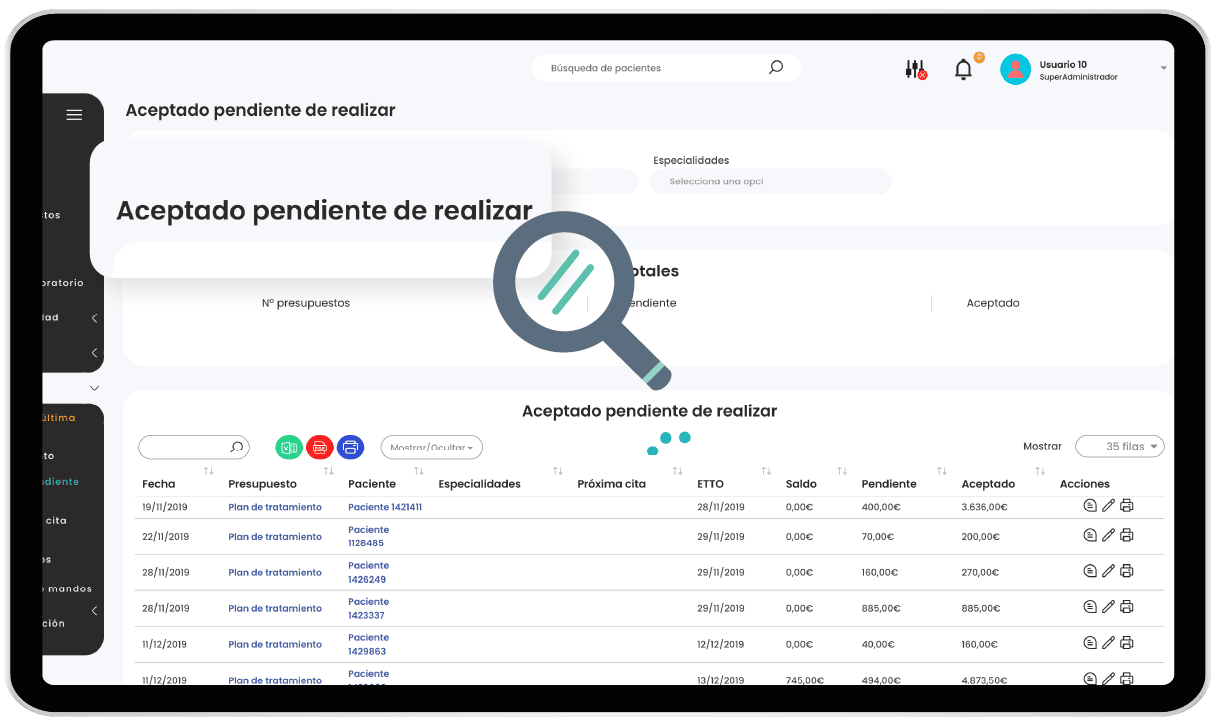 Tu clínica genera día a día muchísima información relevante. Optimydent te ayuda a filtrarla y a organizarla por los listados que mejor se adapten a tus necesidades.